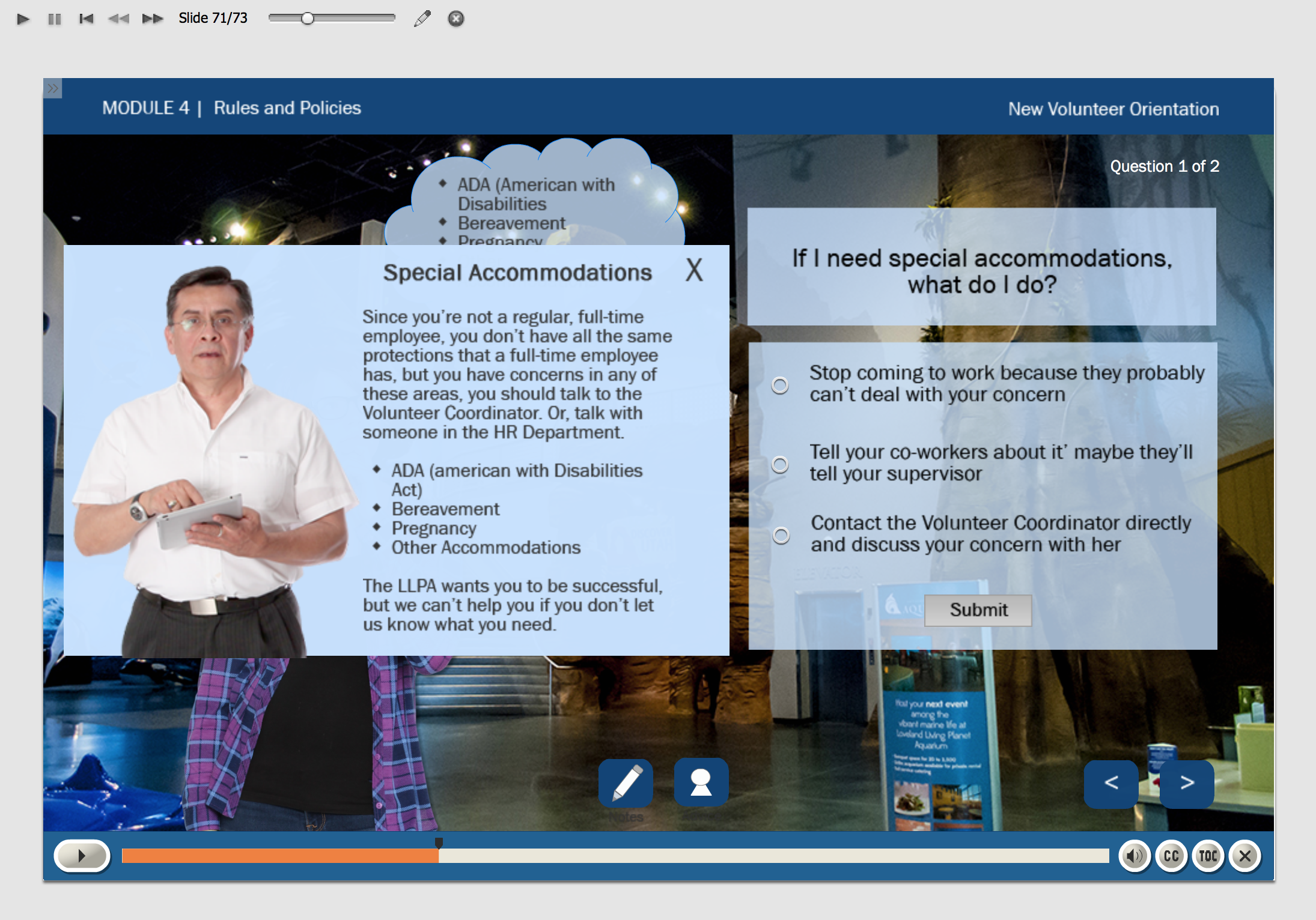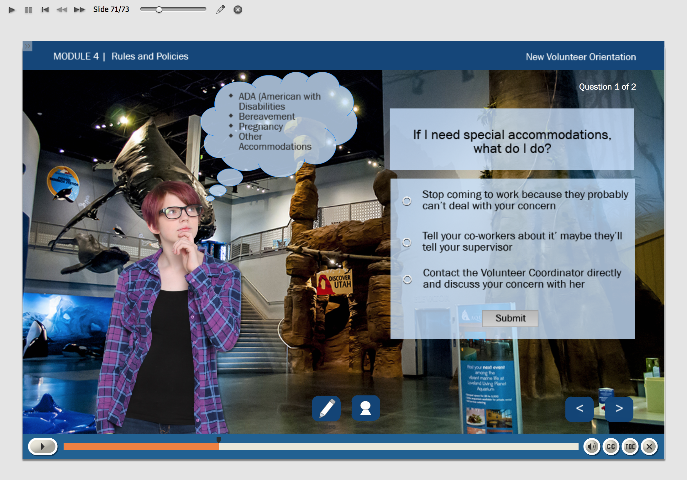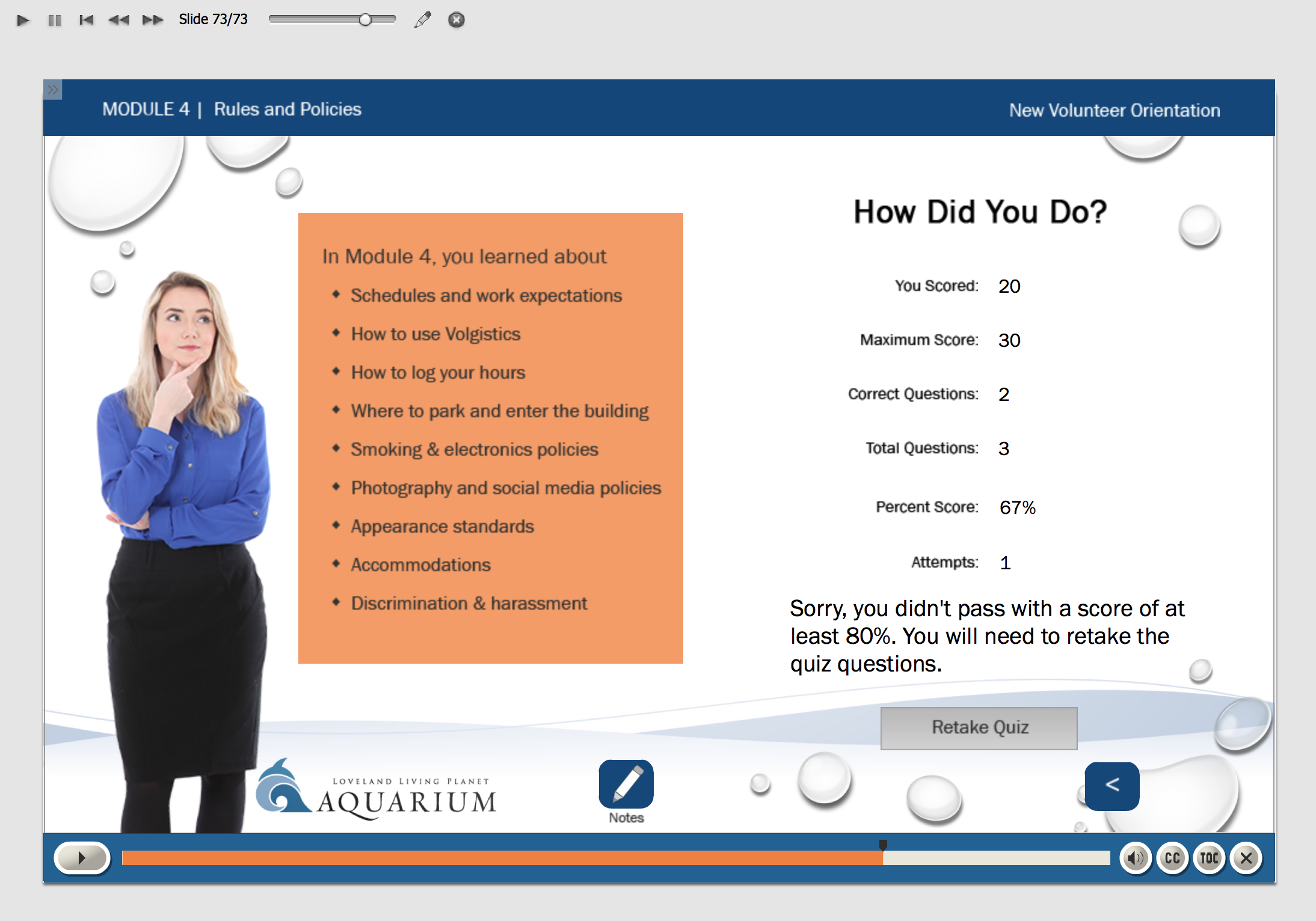 At the Loveland Living Planet Aquarium, they wanted to have a better way of training their volunteers. The former way was a 4 hour video that volunteers had to watch but it was not very efficient.