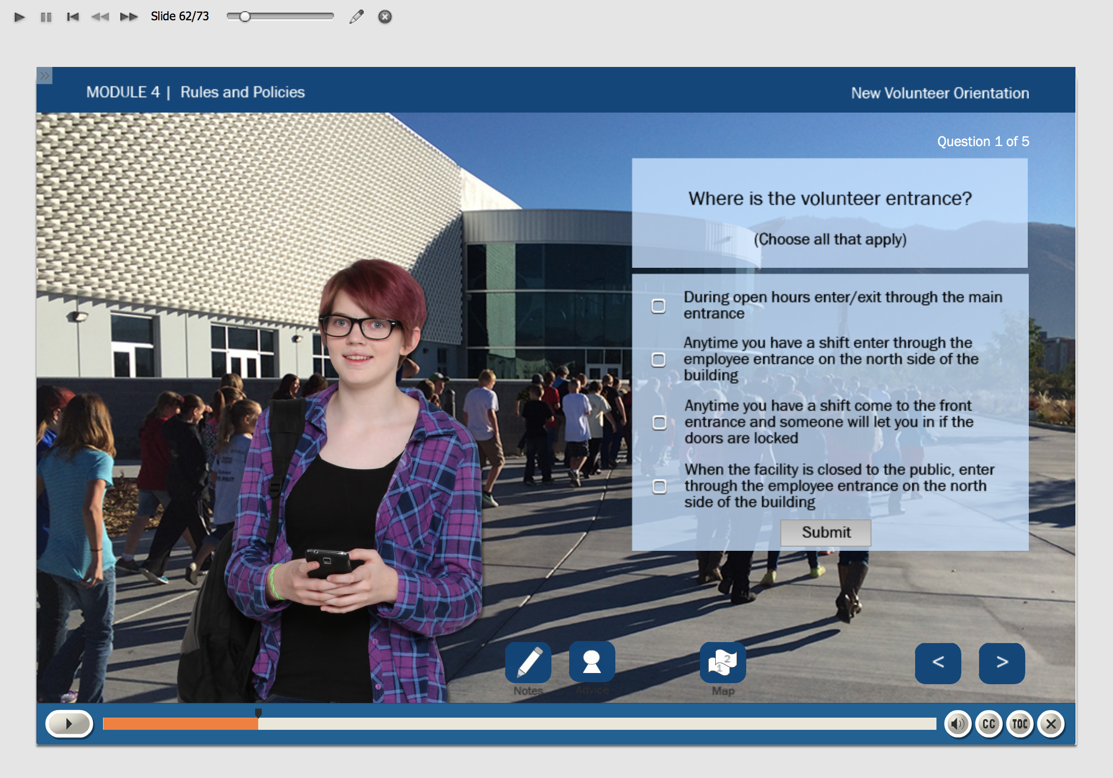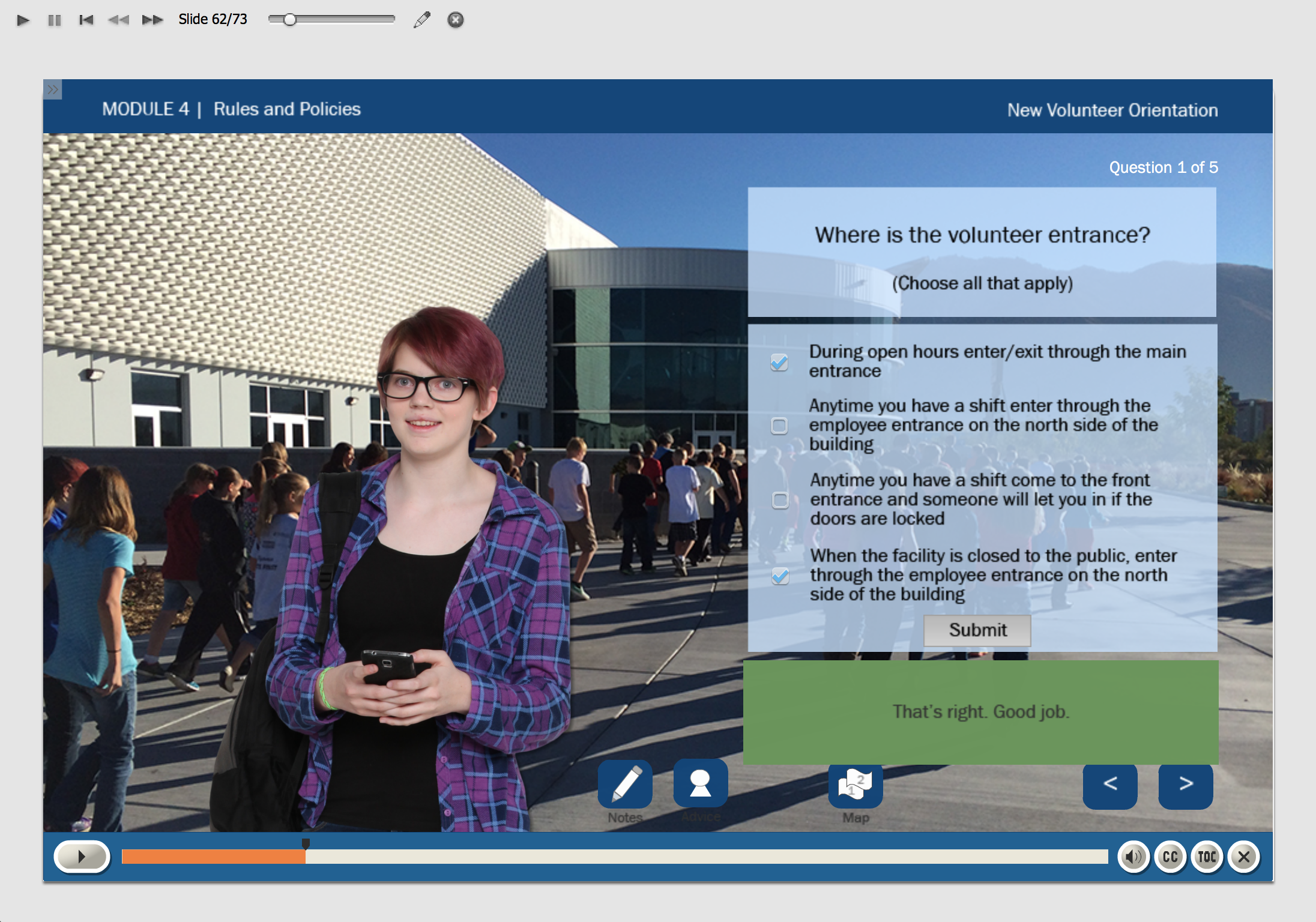 When it was time to test the final iteration of the modules, we had them tested with people of all age groups and found that it took users an average of 1.5 hours to go through all five modules. The product was considered a success as we managed to replace a 4-hour long video with a shorter interactive training experience for the volunteers.